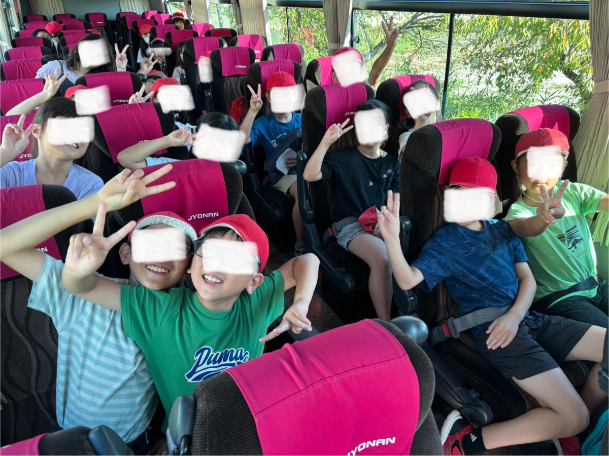 校外学習へ出発いたします。高速に乗ったら、バスレクということで、子供たちはワクワクしています。