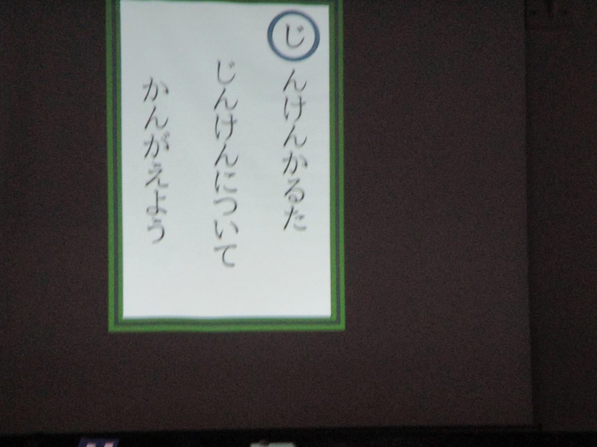 代表委員会中心に人権集会がロング昼休みに行われました。みんなの多様性を尊重し、人権を大切にした接し方ができる心を育てることを目的として行われました。今年度は国際理解的視点も入れ、本校に多く在籍しているお友達の出身の国の紹介を行いました。ネパールの学校の先生は日本の先生と違うという発表の時は、「えー」と驚きの声があがりました。また、各クラスでつくった「人権かるた」発表もありました。
