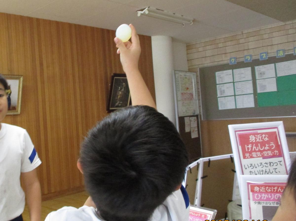 ちょこっとサイエンス広場は1月30日まで開催し、その後はワークショップ(紫外線ビーズストラップ・貝がらマグネット)を行っています。さて、ちょこっとサイエンス広場で人気だったおもちゃは何だと思いますか?なんと「夕焼けたまご」です。たまごを光にかざすと、中が夕焼け色に見えるのです。それを見た子どもたちは、「なぜだろう?」「どうして?」と口々に不思議がっていました。この体験が心に残り、何年後かに「調べてみよう!」「同じように夕焼け色になるものをつくってみよう!」と探究の一歩を踏み出してくれたらと願っています。