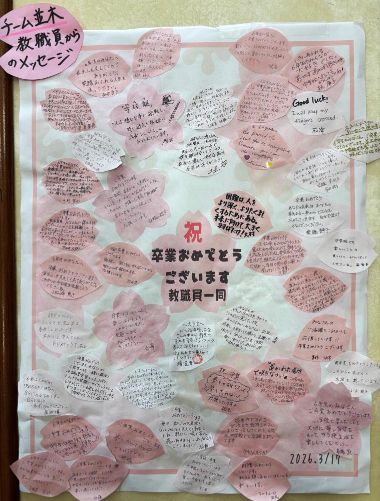 6年生の皆さんのこれからの歩みが、希望に満ちたものとなることを心より願っています。