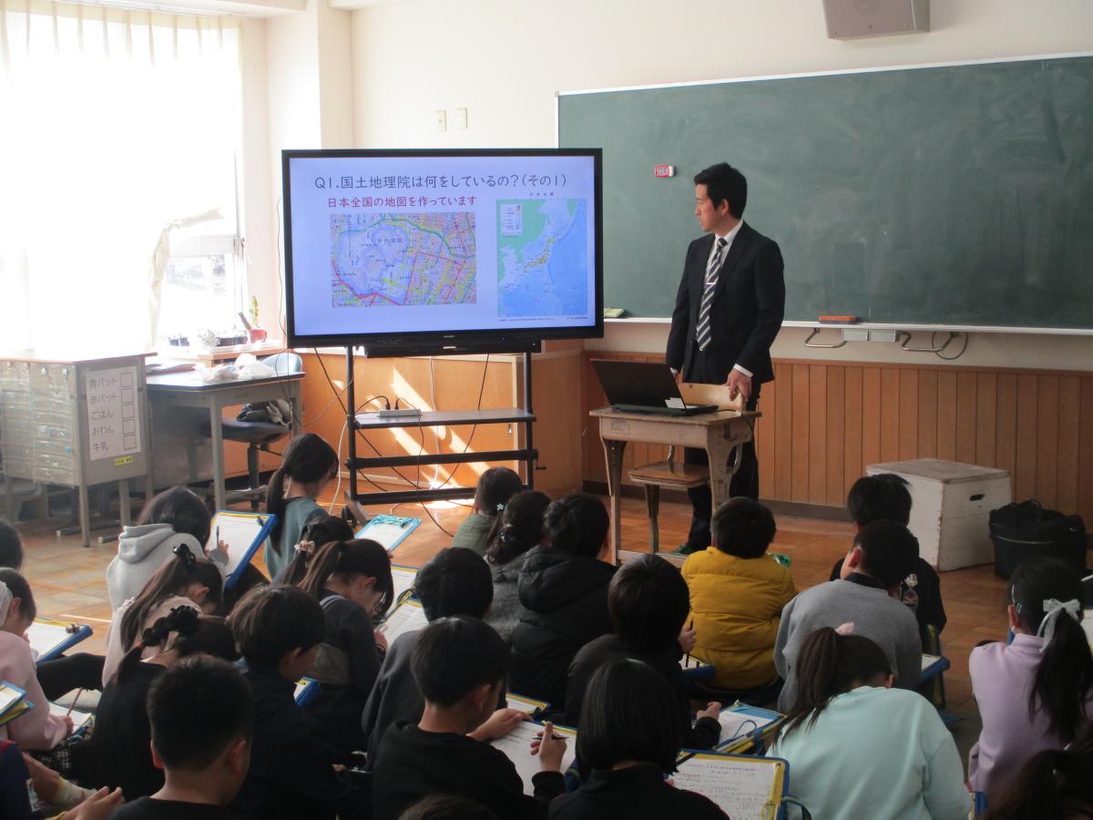 まず、3学年のつくばスタイル科「お仕事先生」では、国土地理院、産業総合研究所に勤めている保護者をゲストティーチャーとしてお招きして、仕事の内容や仕事に対する考え方について詳しく教えていただきました。子どもたちの勤労観や、職業観に繋がる貴重なお話でした。
