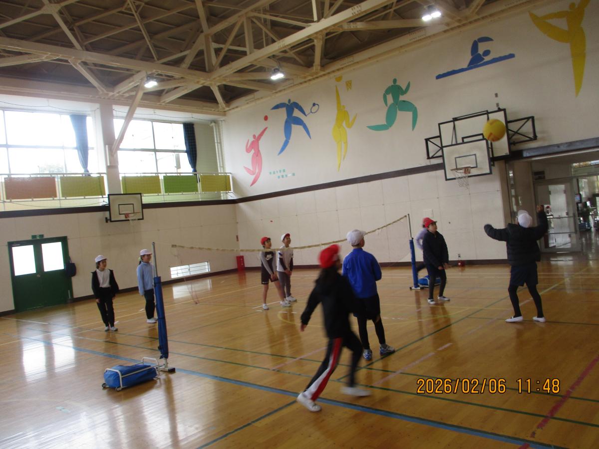 2月から、体育ではソフトバレーボールが始まりました。安全に楽しくプレーするために、ルールを全体で確認している場面です。トスやラリーを意識して、チームの仲間と協力しながら励んでいます。