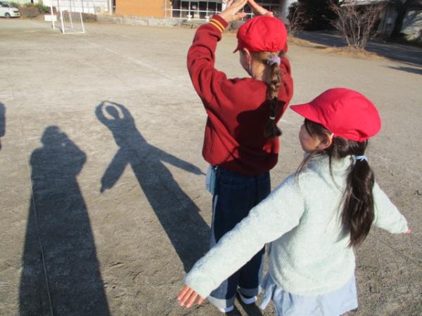 生活科で影遊びをしました。影を使って、影踏みをしたり、色々なポーズをとったりして、影の不思議さや面白さに気付くことができました。寒い中、寒さに負けずに元気いっぱい遊ぶ姿が見られました。