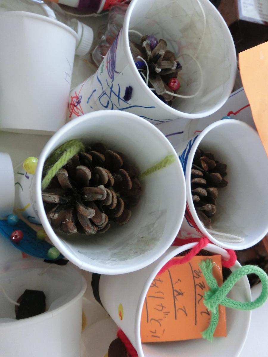 12月に行う、年長さんを招待するあきまつりに向けて、 準備を頑張っています。どうしたら、年長さんが喜んでくれるか 試行錯誤しながらおもちゃを作っています。