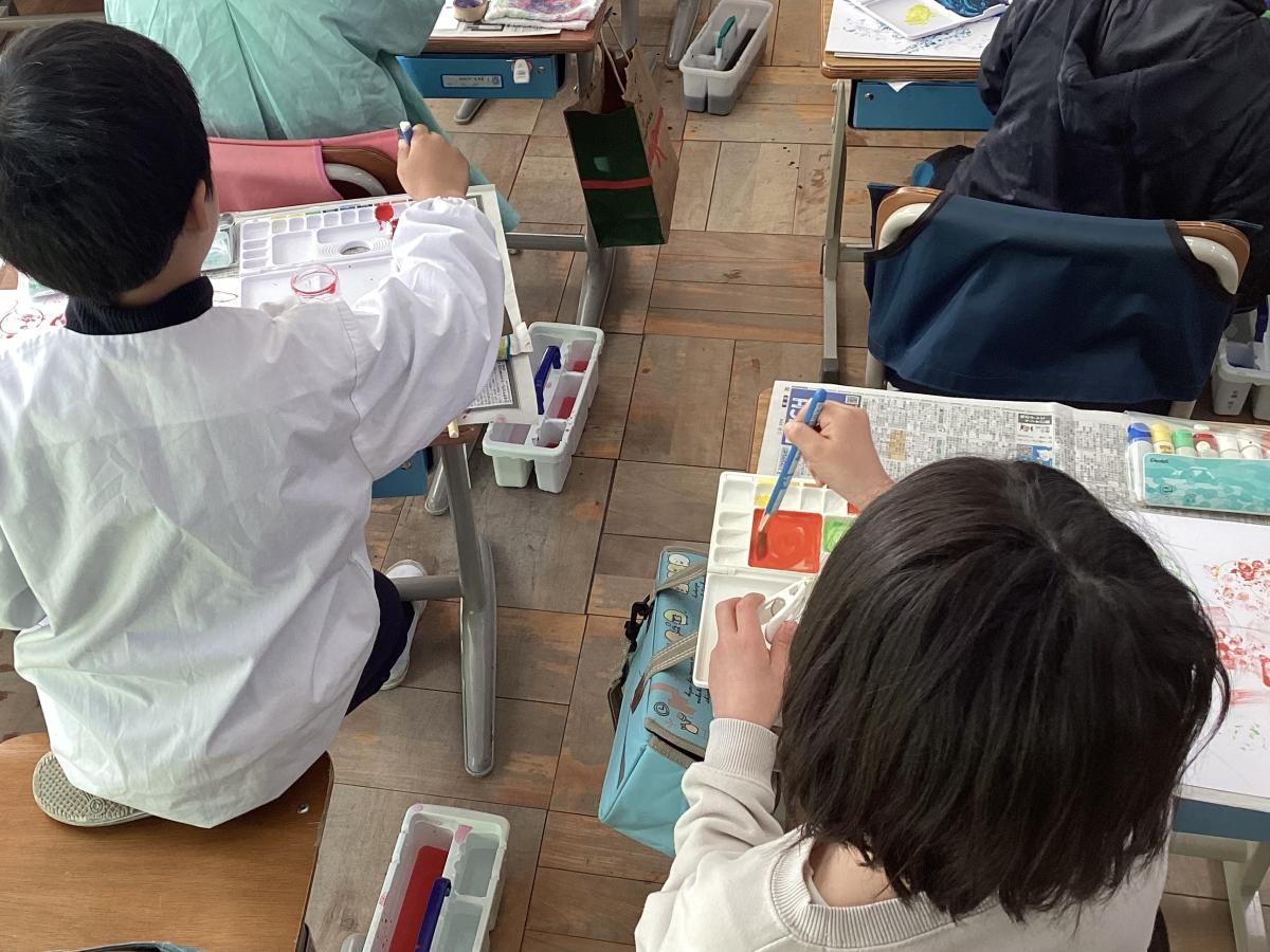 1年生は、「スタンプぺったん」という図画工作の授業を行いました。もってきた材料を使用して、いろいろな色や形のスタンプを作りました。思い思いの題名をつけ、出来上がった作品を友だちと見せ合い、楽しむことができていました。