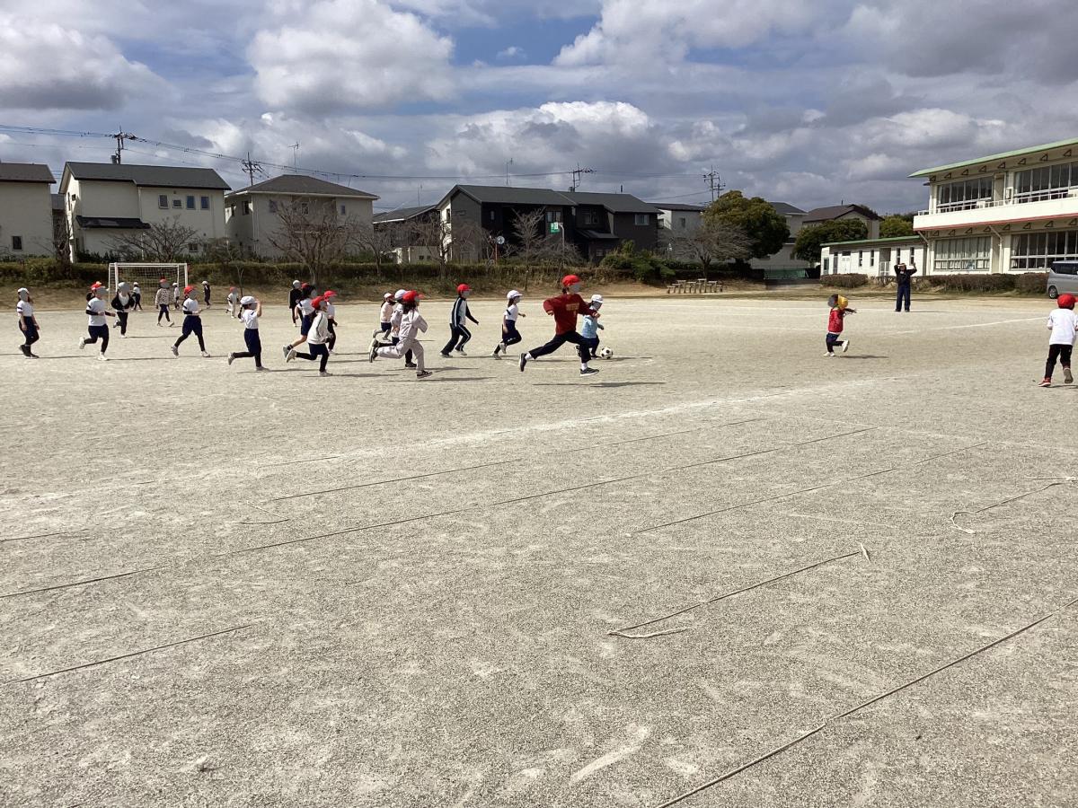 体育の「ボールけりうんどう」の単元でゲームを行いました。今年度最後の体育ということもあり、大変盛り上がっている様子でした。一人一人が互いに声を掛け合いながら、楽しんで取り組むことができていました。