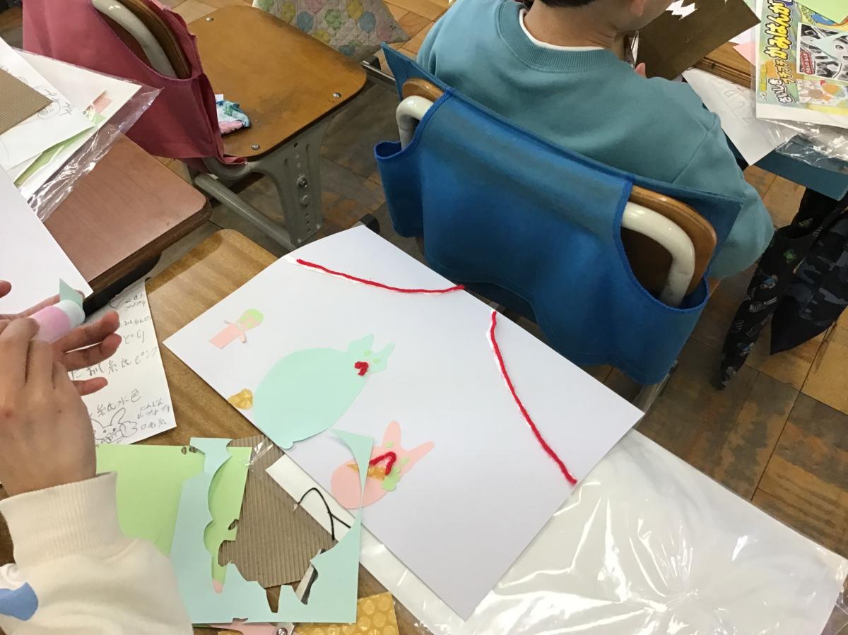 図画工作の時間で、紙版画に挑戦しました。版画の楽しさや面白さに気づき、インクを塗った後にきちんと模様が写るかドキドキしながら取り組んでいました。