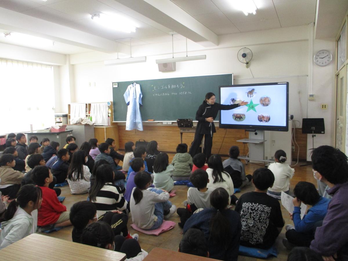 国際理解教室において、モンゴルからのゲストティーチャーをむかえ、日本とモンゴルの文化や習慣の違いについて学びました。日本とは違う文化の中での暮らしは、子どもたちにとっても新鮮だったようです。