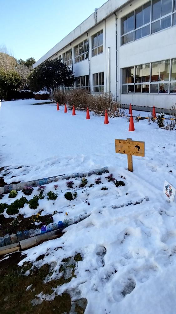 ハボタンもパンジーも凍っています。冬の花は強いですね。2時間遅れとなりましたが、通学路のペディストリアンデッキは、凍っている箇所もあり、職員も手分けして、見守りをしました。幸い、ケガをした子はおりませんでした。サポーター様も一緒に歩いてくださり、ありがとうございます。