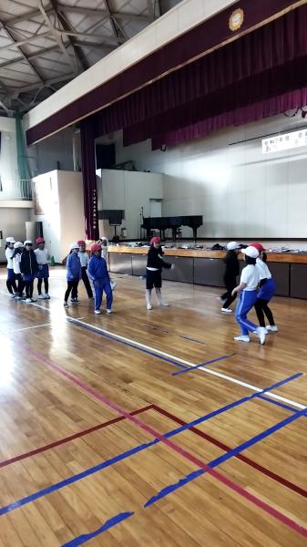 体育館で、3年生が体育の授業!複数写真あります。声をかけ合って、取り組んでいます。