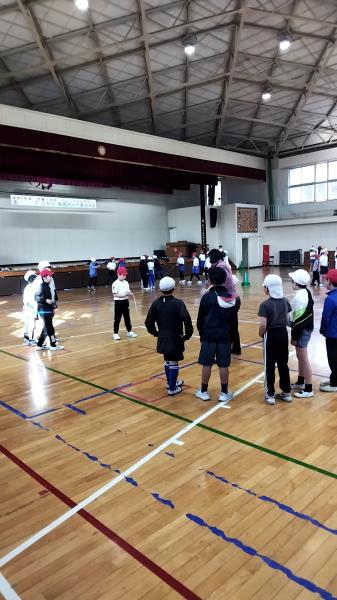 5年生も練習中。トロフィー目指して、どの学年も頑張っています。トロフィーを最初に見せた体力向上委員会の子供達のアイディアは素晴らしいです。意欲が高まりました。複数写真あります。