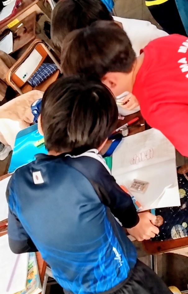 ただ、重さを測っているのではありません。予想してから、測っているので、夢中になっています。学びの一工夫ですね。複数写真あります!