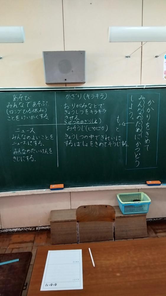 1年生が、対話した内容を、先生が板書していました。それぞれの係の仕事がグレードアップしたようです。