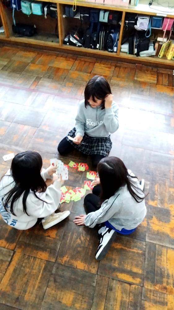 ワークスペースで、トランプ中。意外と子供達は、このスペースで和んでいます。