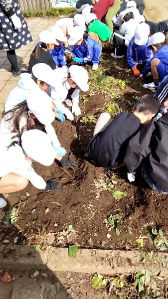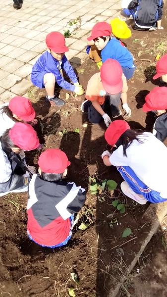 今年はさつまいもの収穫が不調だと、ニュースで聞きました。夏の猛暑と雨が例年より少なかったことが原因だそうです。1年生の畑も例年より、不作でしたが、そんなことはお構いなしで、友達と力を合わせ、ひっぱります。大きなかぶの学習を思い出しますね。複数写真あります。