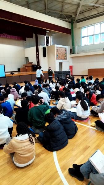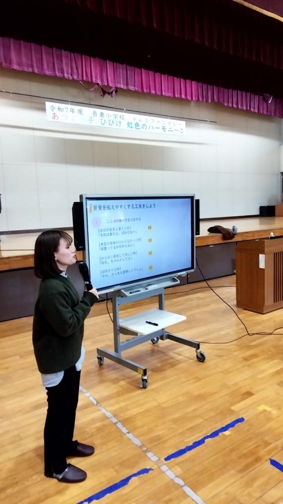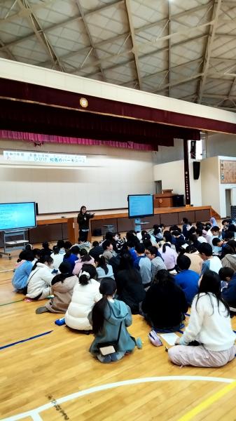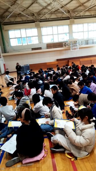 言い方を変えて、あたたかな対話を目指すカタリバさんの授業です。子供達は、様々な言い方に変えて、全体で聞き合っていました。消防点検の方が体育館にいらして、大人でもためになる良い授業でした!と、話してくださいました。みんなの心が穏やかになる授業はいいですね。複数写真あります。