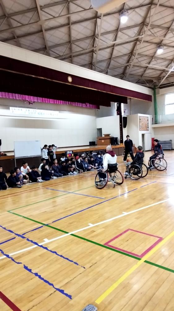 今日は、車椅子バスケットボールを体験しています。スポーツラボの子供達も、操作の仕方を真剣に学んでいます。