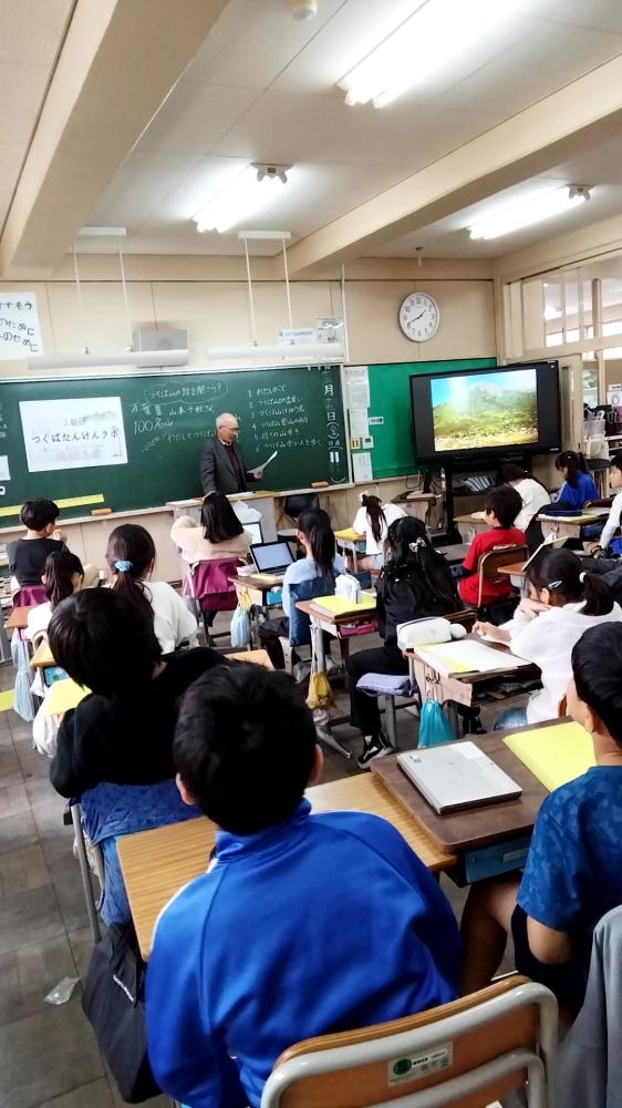 専門家の方の語りに吸い込まれるように、3年生が集中しています。筑波山は、何度も登っているそうで、筑波山の魅力を語ってくださいました。