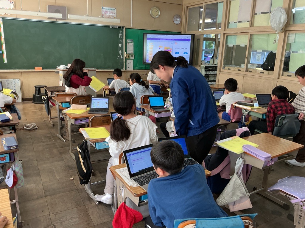 本校の総合的な学習の時間「つくばスタイル科」は、吾総研(ライバルは国総研)の中に16のラボがあり、4年生から6年生の異学年で学びます。3年生はその前段階として、3総研というものがあり(ライバルは産総研)、学年解体で、4クラスの子供達が興味関心のあるラボを選びます。写真は、その3総研の一コマで、プログラミング教室が開かれています。つくば市総合研究所の支援員さんをゲストティーチャーにお迎えしました。子供達のプログラミングを支援してくださっています。つくば市総合研究所の支援員さんは、授業づくりにもアイディアを出し、先生方と対話しながら授業をデザインしてくださいます。まるで、本校の職員のようです。気がつくと、校内で当たり前のように笑顔でいらっしゃいます。いつもありがとうございます!