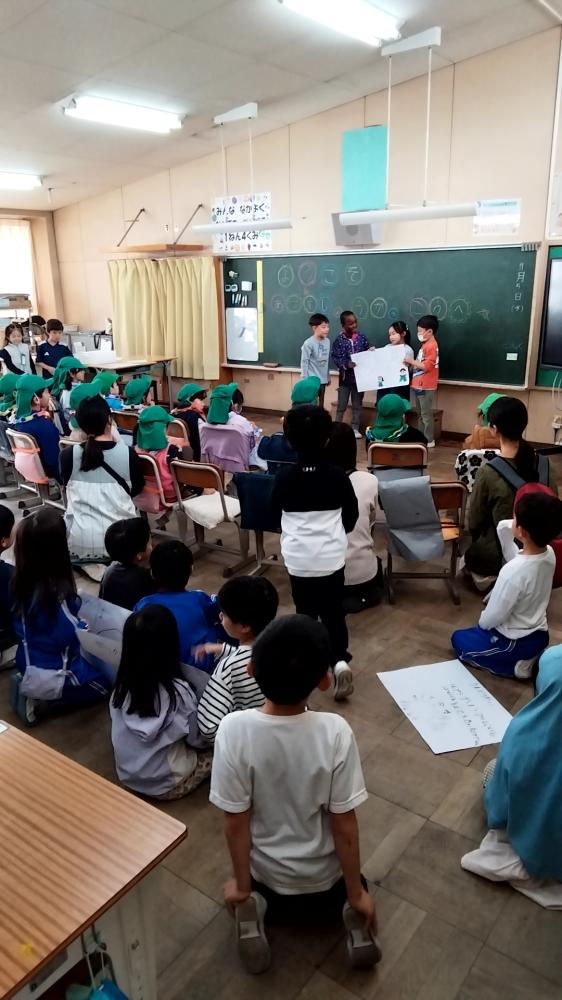 吾妻幼稚園の皆さんに、吾妻小学校を知ってほしくて、クイズを出しています。幼稚園の皆さんも、しっかりクイズに答えてくれました。先日の運動会では、吾妻保育所の皆さんが応援に来てくれました。少しでも、小学校の雰囲気を体験してほしいです。これからも、交流の場を大切にしていきます。