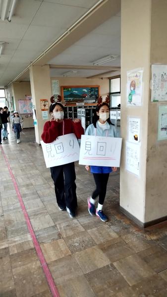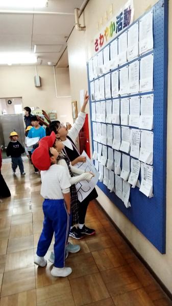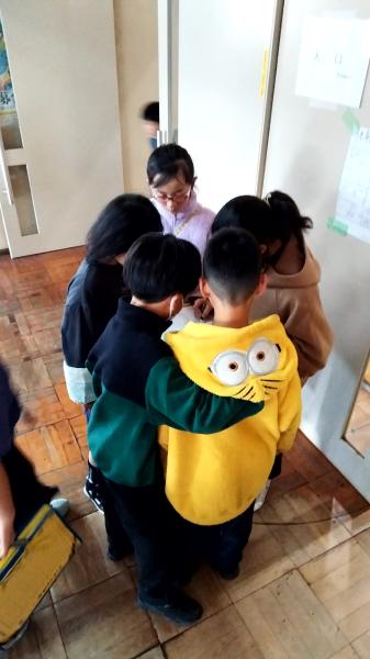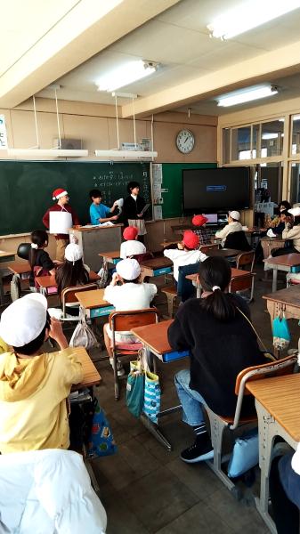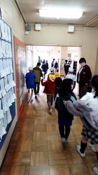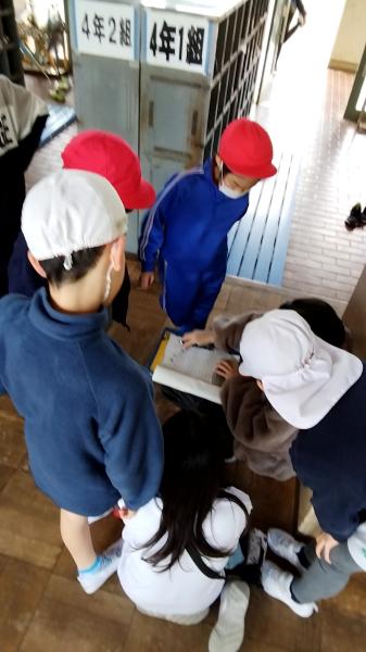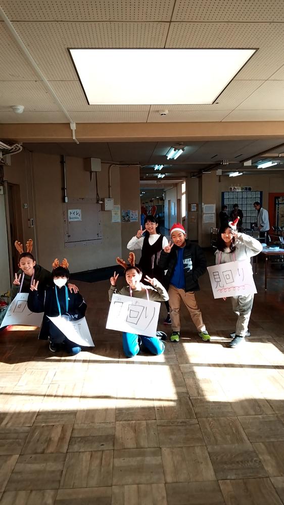 写真は、見回り担当!困った時には、助けてくれます、全校遊びは、持続可能なものとなりました。なぜなら、子供達が自走し、自分達で運営しているからです。今は、終了し、迷子になっている人がいないか、子供達同士、確認し合っています。1年生から6年生まで、幸せ満喫、十分助け合った、クリスマスクイズでした。校舎が、アミューズメントパークになりました。5.6年生、みんなに優しくしてくれて、ありがとう!頼りになります。写真は、たくさんあります。下の学校からのお知らせをクリックしてください。750人近くおりますが、チームワークよく、たてわりチームでまわっているのがわかります。
