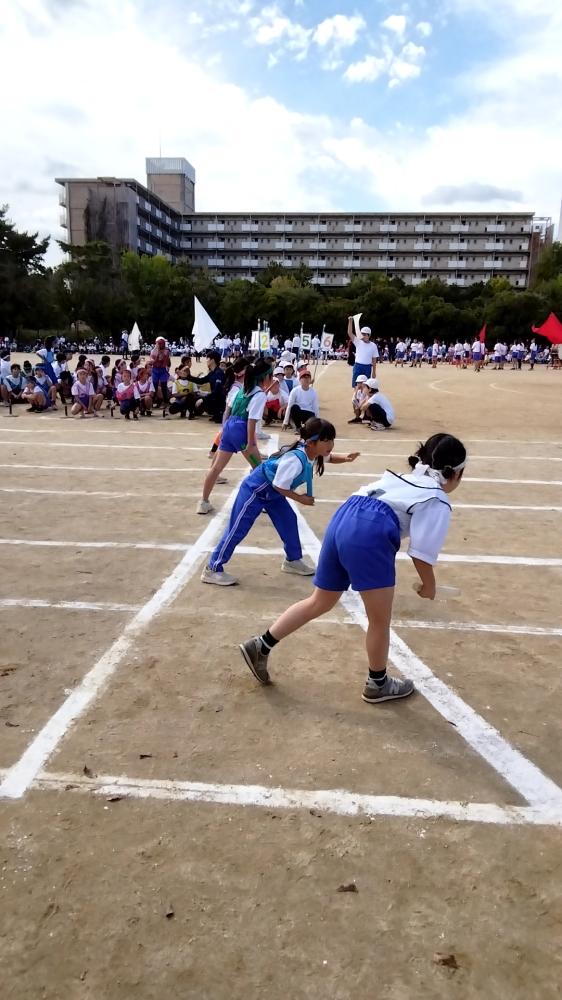 写真は、リレーのスタートです。1年生も、気合いが入っていますね。