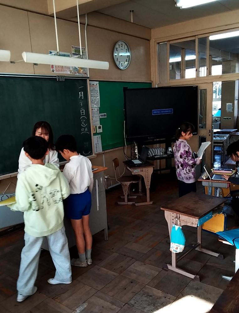 先生に相談したり、友達に意見を聞いてみたり。テーマがしっかり設定できるようになって、頼もしい3年生です。複数写真あります。