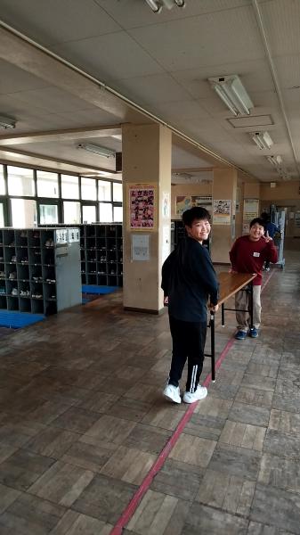 これからの学習計画を確認し合っています。すると、廊下から、エッサホイサのかけ声が。明日の新入生説明会の準備をしているクラスがありました。複数写真あります。全ての作業が楽しそうでした。