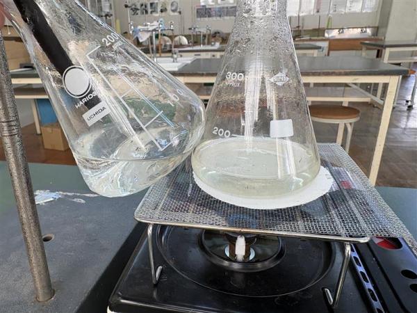 普段は、アウトドアラボで活動しているのですが、マジカルスティームラボ担当の先生が理科教員として協力してくださり、実験を安全に行っています。もしも、アウトドアで何かがあって、水がない!!という事態を想定して・・・・。葉っぱの上の水滴をたくさん集めてきた水と、それを蒸留した水を私にも見せてくれました。とても透明できれいな水に変身していました。探究している子供の笑顔はいいですね!複数写真あります。今日の吾総研は、東京書籍の方が興味をもち、参観してくださいます。