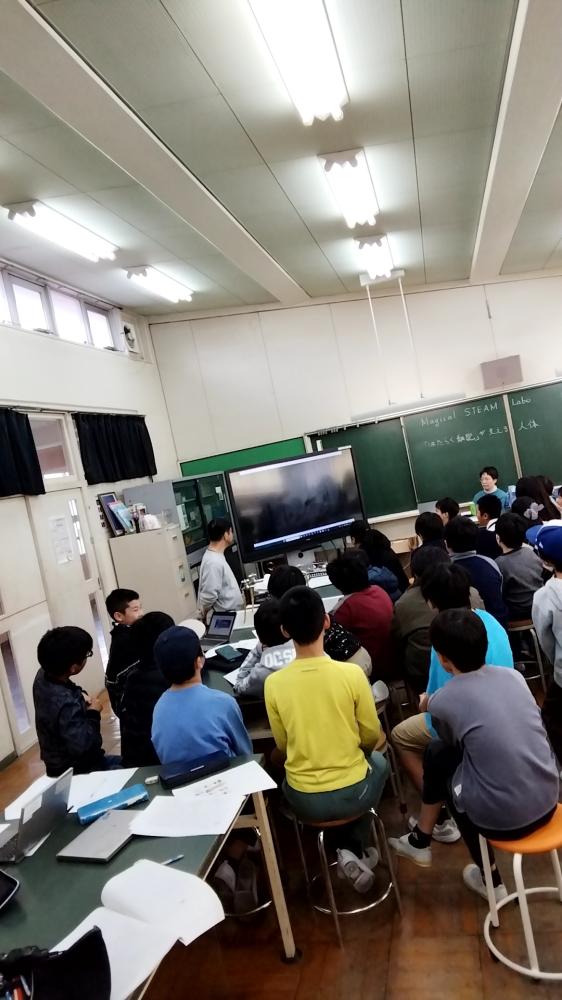 一部は、レクチャー。二部は動画視聴です。子供達のメモを見てびっくり!リンパ球や赤血球など、詳細なメモがびっしり!それらのレクチャーを受けて、動画を視聴していました。 筑波大学の先生にお越しいただきました。子供達は大喜びでした。