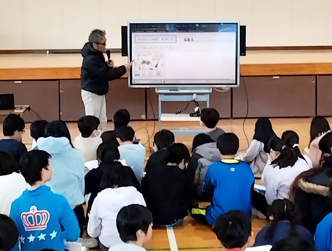 筑波大学の研究生の皆さん、留学生の皆さんを講師にお迎えし、4年生がグループトークも取り入れながら、講師の先生方と交流しました。本校は外国のお友達が多いのですが、今回の集会で改めて、日本や世界の様子を比較し、気候変動によってどのような影響を受けているのかを具体的に考える機会となりました。「問題を解決するには何をどうすればよいか。」4年生がグローバルな視点でとらえ関心をもつ様子が見られ、とても良い授業になりました。お越しくださった皆様、本当にありがとうございました。企画してくれた日本語教師の先生も、とても嬉しそうでした。