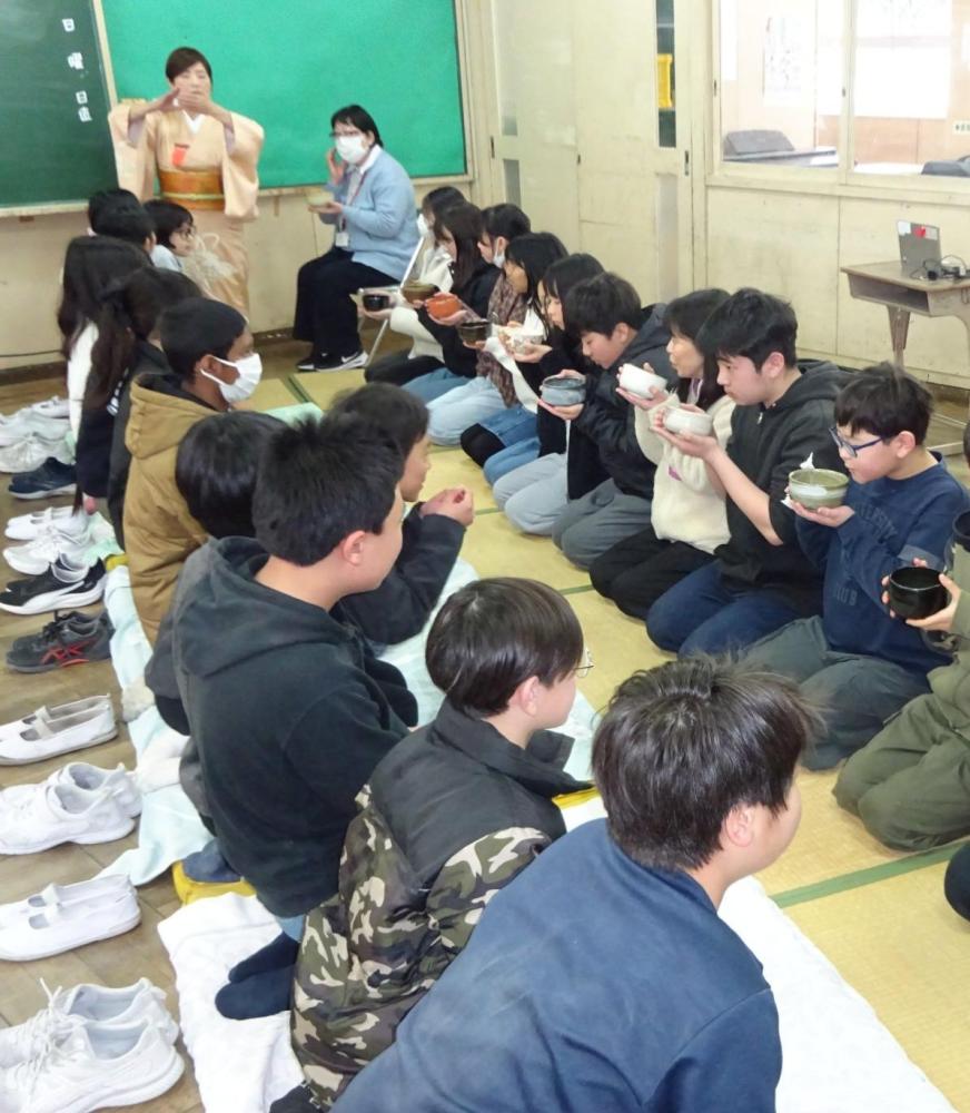 外国のお友達も興味津々で参加するお茶体験。毎年、子供達は、楽しみにしています。畳も借りて、コミュニティルームで、楽しく活動していました。講師の先生方、ありがとうございました。