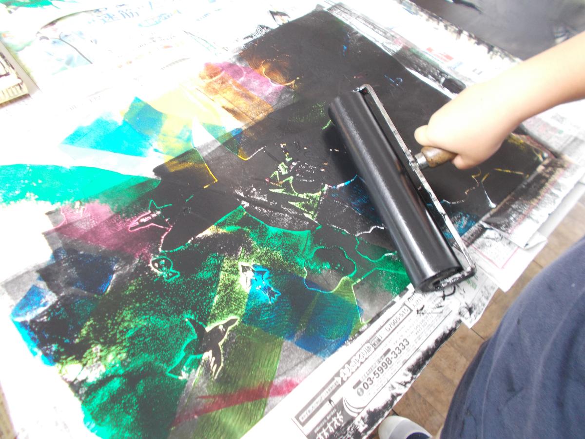 2年生の図工では版画を作成しています。これまで、色を付けたローラーで画用紙に色をつけたあと、好きな形に切ったシールを貼りました。今日は、最終工程の黒インクを塗りました。次回、シールをはがして作品の完成となります。黒インクを塗る作業が一番難しい工程ですが、上手にローラーを使っていました。作品の完成が楽しみです。