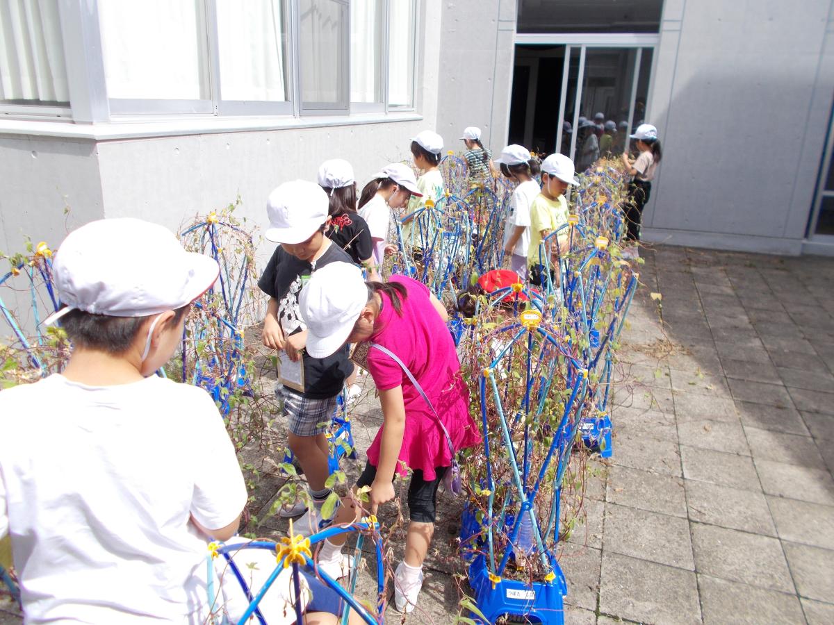 1年生の生活科ではアサガオを育てていました。今日はアサガオの種をとりました。種を採ったあとは、種がどんな形なのか絵を描いたり、今までのアサガオの育ちかたの順番を考えたり、育て方で大切なことを確認したりしました。来年は野菜を育てます。その時の本日の学習が活かされることでしょう。