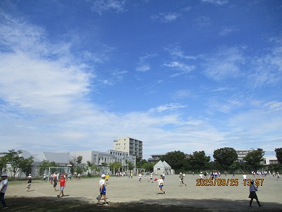 涼しさを感じることができる日が少しずつ多くなってきました。写真は昼休みの様子です。体を思いっきり動かしたり、虫取りをしたりする子どもたちも多く見られました。「秋」ならではのよさをたくさん見つけて体感してほしいと思います。