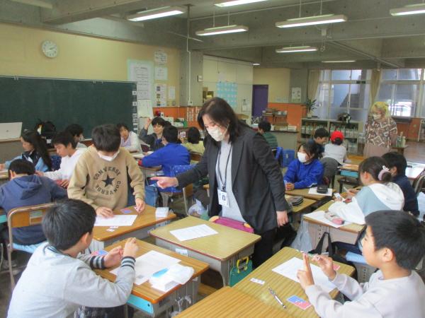 地域の防災士の方にお越しいただき、災害時に対するシミュレーションや心構えについて、楽しいゲームを通じて授業を行っていただきました。「こんな時どうする?」という課題に、正解が一つだけというわけではない場面で、一人ひとりが考えたことを対話を通して意見を発表していく中で、災害に対する意識や考えが深まっていました。