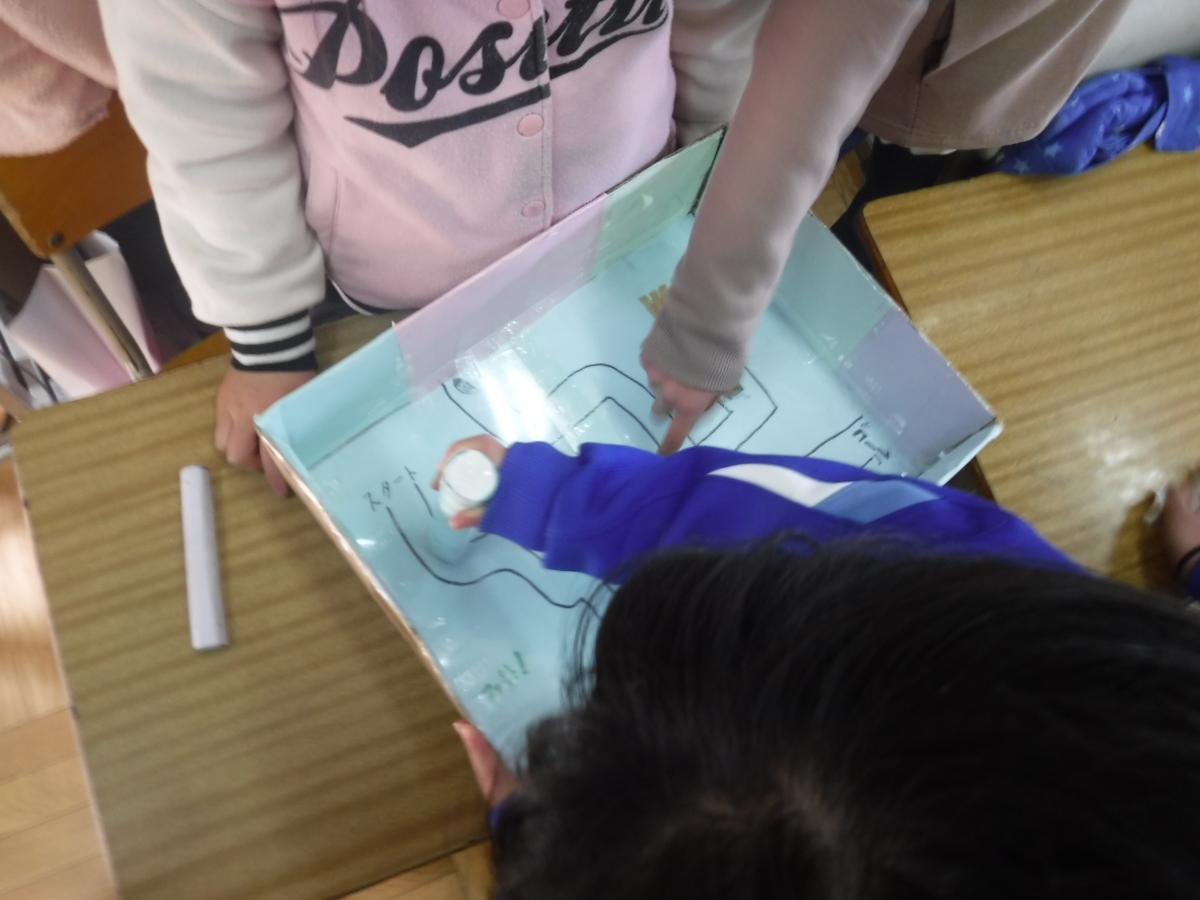 作成したおもちゃを用いて2年生に理科の楽しさを伝えることが交流授業の目標です。