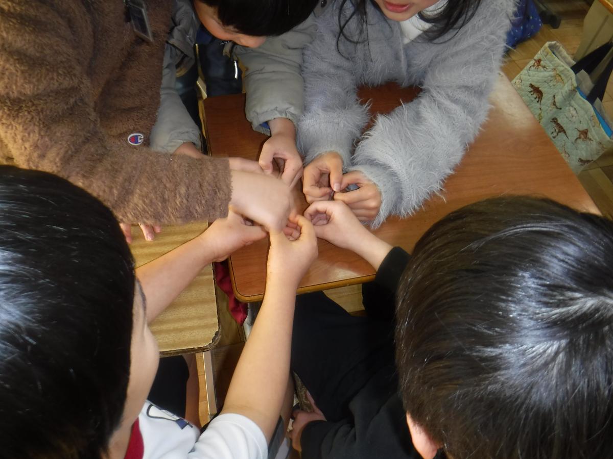 わらべうたの「ずいずいずっころばし」を歌いながら、手遊びをしました。友達と一緒に歌い、遊んでいるうちに、はじめは合わなかったリズムが合うようになってきました。次の時間は、「なべ なべ そこぬけ」や「あんたがたどこさ」などの遊びにチャレンジする予定です。