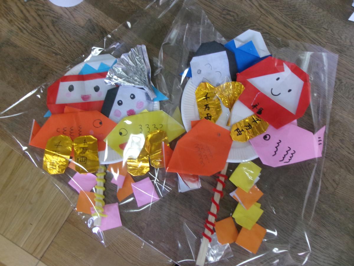 図工の時間に、折り紙を使って熊手を作りました。みんなちがう素敵な作品ができました。ぜひ、お家で飾ってみてくださいね!