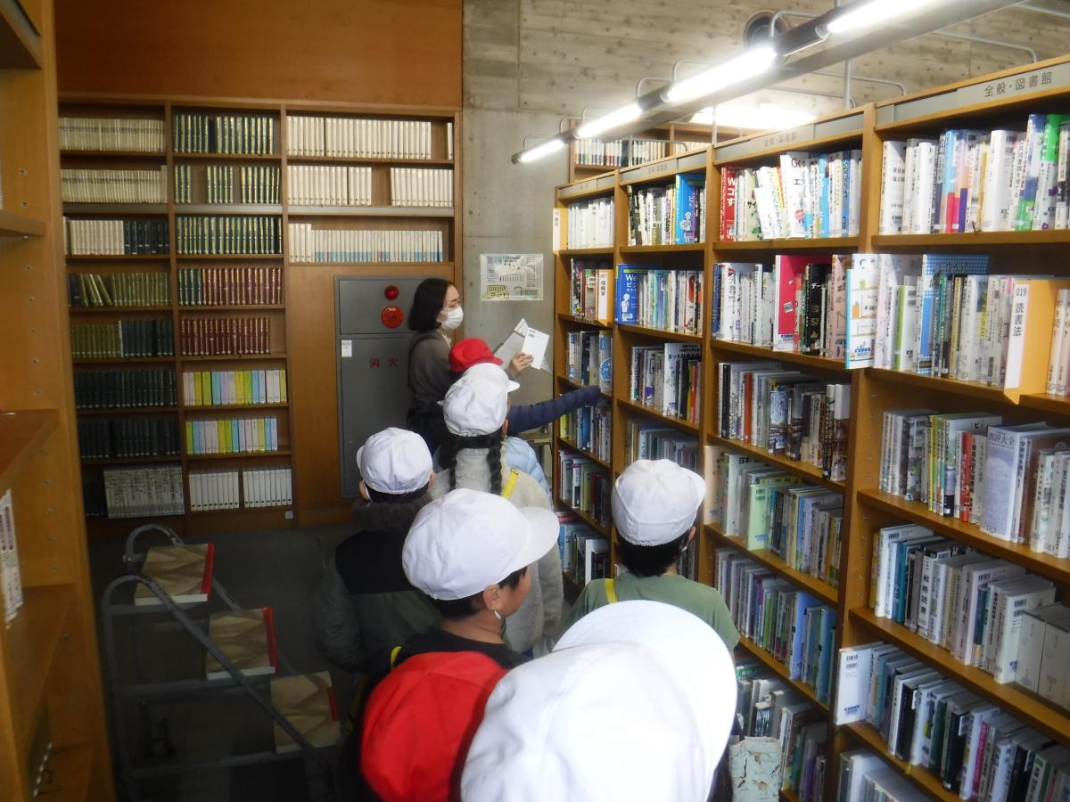 生活科の学習でつくば中央図書館に行ってきました。中央図書館には、27万冊以上の本があるそうです。普段は入ることのできない書庫にも案内していただきました。天井まである大量の本がきちんと整理整頓されている書庫の様子にびっくり。多くの人が利用する公共施設には色々な工夫があることがわかりました。