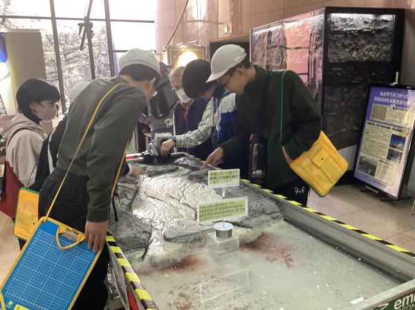見学では、日本の温泉地と地質の関係、地形と人口・交通網のつながりなどについても説明を受け、地質が生活に密接に関わっていることを実感しました。子どもたちからは、「地質を調べることで昔のことがわかるのはすごい。」「鉱物をとるには高い技術や多くの時間が必要だと分かった。」「難しく感じていた地質や地層が、実は生活と深くかかわっていることを知ることができた。」などの感想が聞かれました。