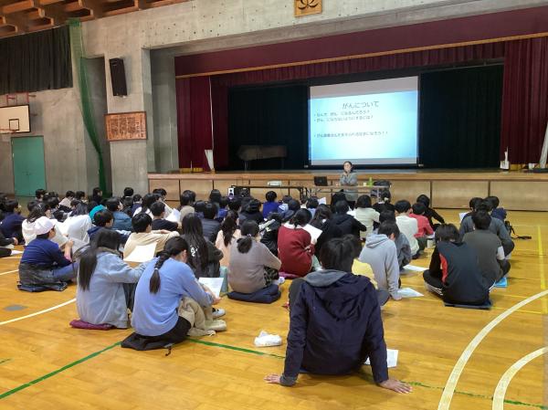 12月10日(水)に、がん教育講演会を行いました。今回は、筑波大学附属病院 放射線腫瘍科の沼尻晴子先生を講師にお迎えし、お話をしていただきました。