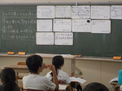 6年生は、長さを基準とした時と重さを基準とした時の計算方法を考えていました。