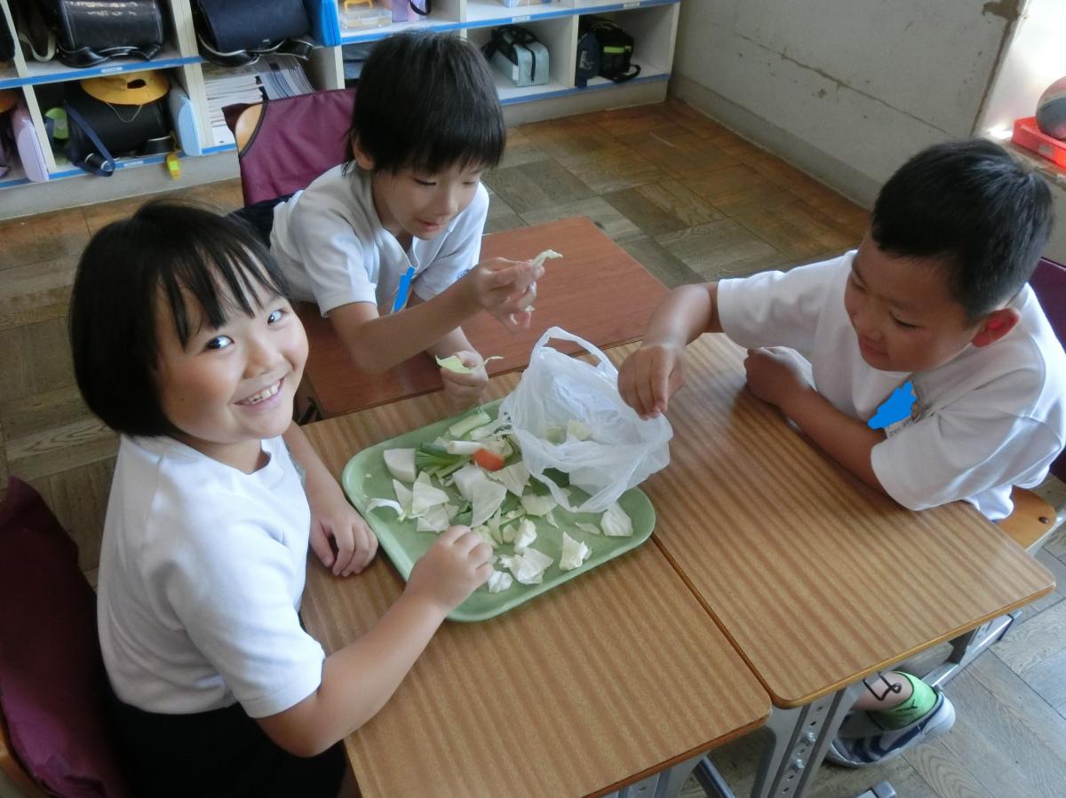 一食に必要な野菜の量を勉強しました。 苦手な野菜にも栄養があることが分かり、「がんばって食べる!」とやる気満々になりました!