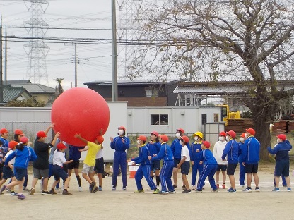 今回の全体練習は大玉送りです。今日は紅組が勝ちましたが、本番はどうなるかわかりません。当日の応援よろしくお願いいたします。