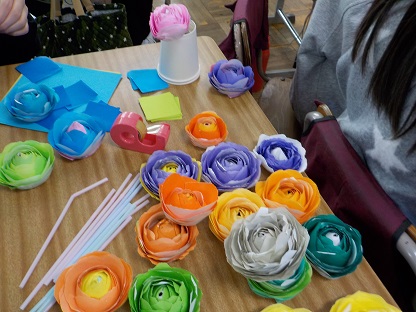 6年生がきれいなお花を作っていました。聞けば、「卒業プロジェクトの一つ」ですとの答えが返ってきました。