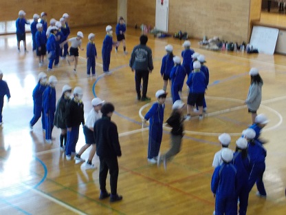 4年生は、「ハイ、ハイ」と声を変え合いながら、みんなで大縄跳びにチャレンジしていました。