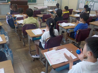 2年生は、上手に2びょうしの拍にのってリズムを打っていました。♪ ♬