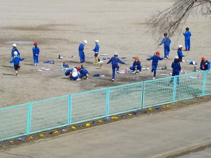 3年生は、大縄のグループと短縄跳びに分かれ体力の向上に努めていました。