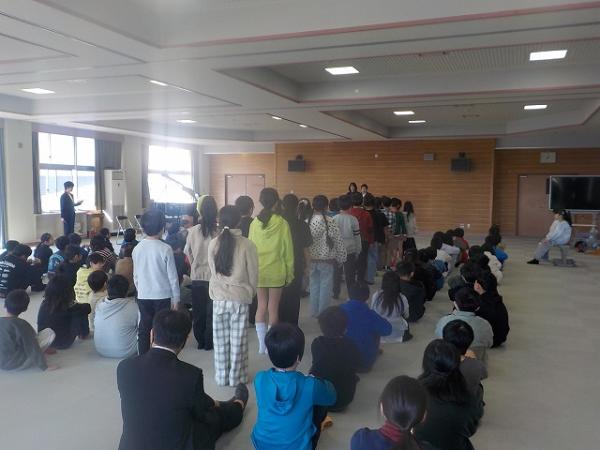 本日は修了式が行われました。全員が修了証を受け取りました。2年生と4年生の児童による、1年の振り返りの作文発表も行われました。代表の児童たちは、堂々として素晴らしい態度発表を行いました。代表以外の児童も、今年度最後の式にふさわしい態度で臨むことができました。次の登校は3月31日の離任式となります。今年度も保護者の皆様に大変お世話になりました。新年度もよろしくお願いいたします。
